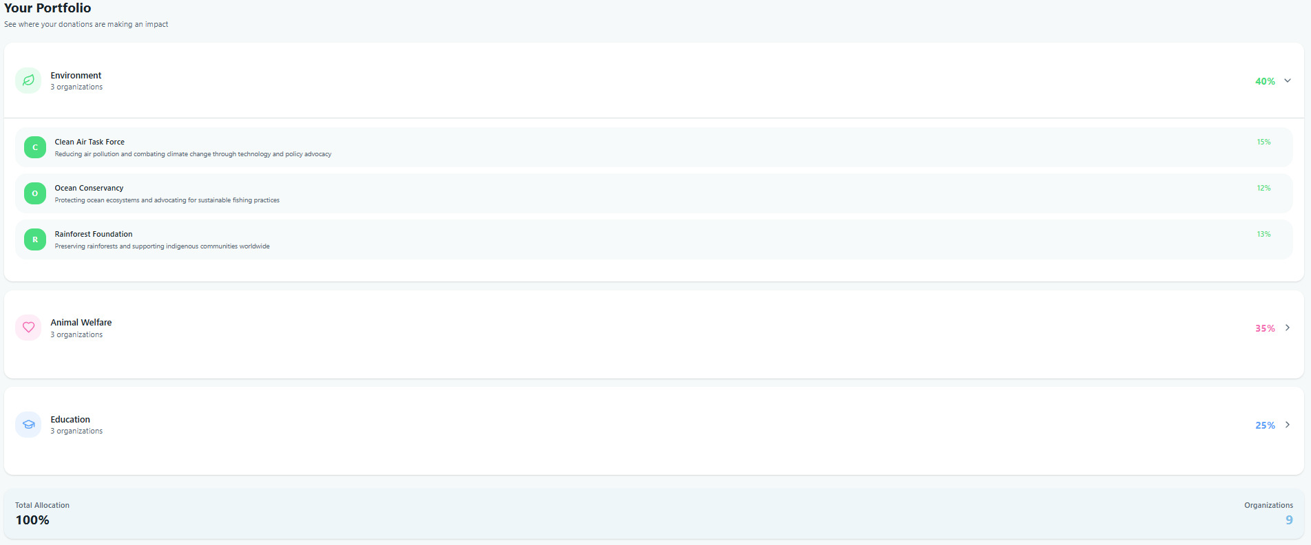 Imagine a single dashboard where you can curate a personalized portfolio of vetted nonprofits, set up recurring gifts across multiple causes with one click, and see real-time impact reports from the field. Whether you’re passionate about education, climate, or local community support, charis provides the data and the tools to help you give with confidence.